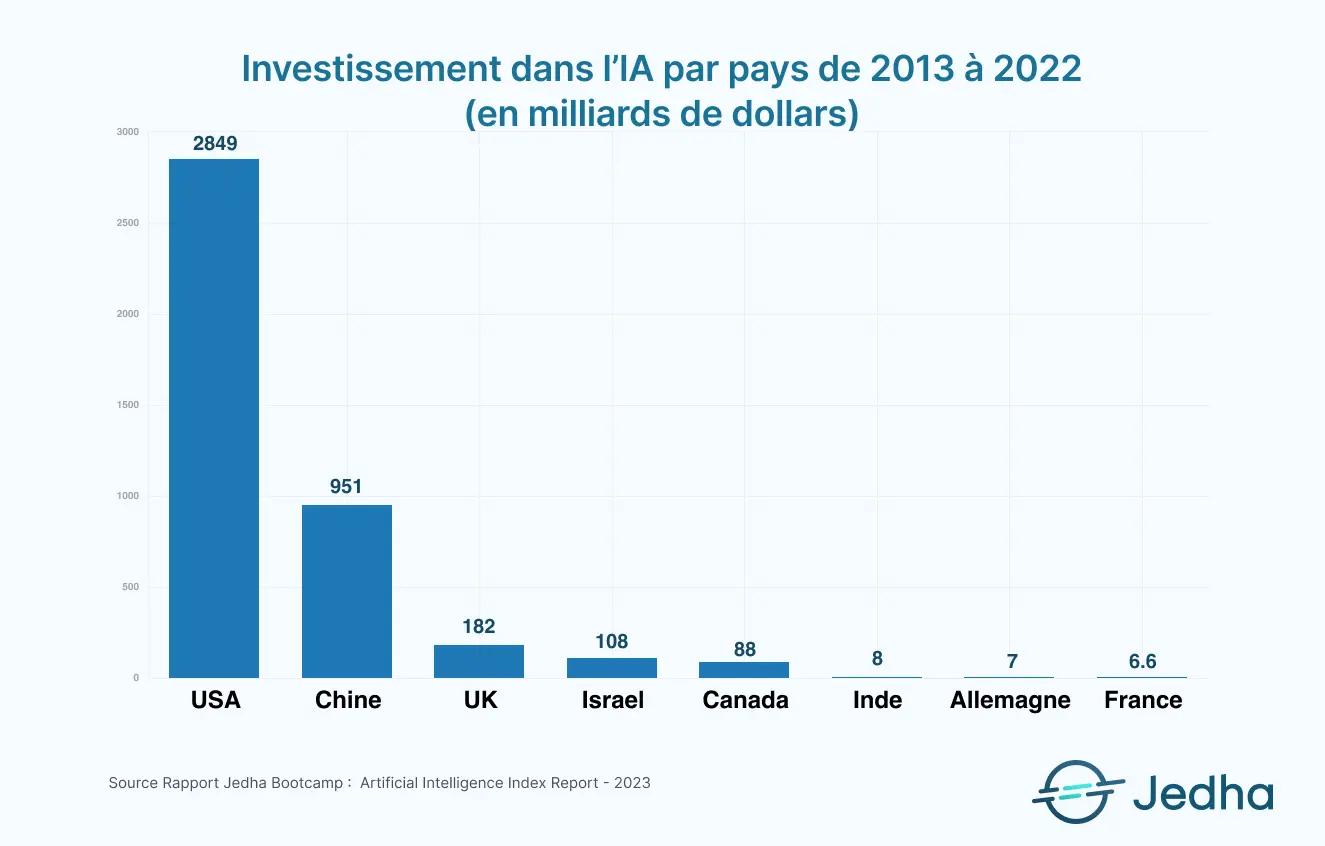 La France est en train de se faire une place de choix dans l’écosystème mondial de l’IA, mais elle reste encore loin de la domination américaine :